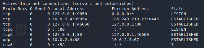 Per capire meglio cose sta accadendo sul sistema che ospita l’onion site ho verificato come prima cosa lo status delle connessione della macchina. Con i servizi apache e Tor attivi lo status delle connessione presentava poche e ben definite sessioni.