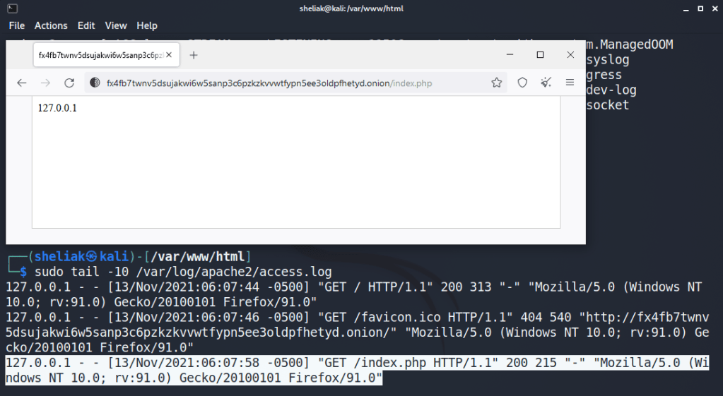 Accedendo quindi al contenuto direttamente dalla guest o dalla mia workstation il sistema potrà registrare nei log l’IP del client che ha eseguito l’accesso al web server nel solito file /var/log/apache2/access.log.