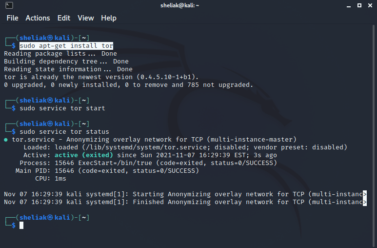 Un minimo di infrastruttura per utilizzare il servizio. Per praticità utilizzo la mia kali box, ma potete ovviamente utilizzare quello che vi pare. L’installazione è semplicissima (vedi screenshot ad inizio post) ed una volta avviato il demone il servizio sarà immediatamente disponibile sulla local port 9050.