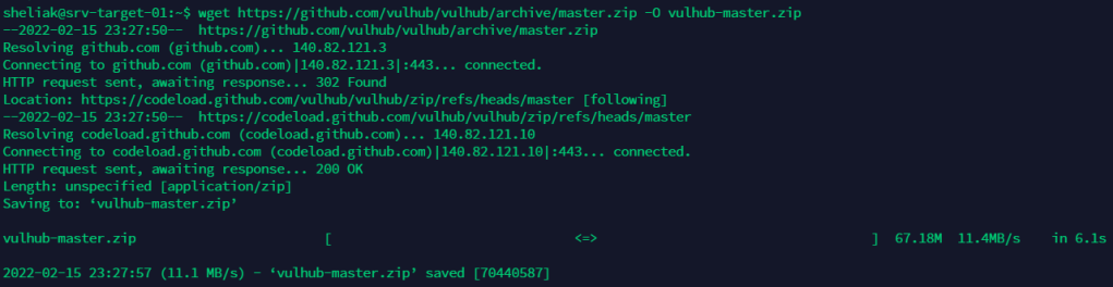 $ wget https://github.com/vulhub/vulhub/archive/master.zip -O vulhub-master.zip