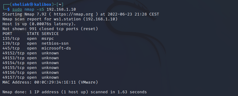La struttura del lab base è molto semplice ma ben mette in evidenza l’utilità della tecnica in se. Lo schema mostra, da sinistra verso destra, il laptop del potenziale attacker posizionato sul segmento di rete di un server Windows (ws1) di cui abbiamo le informazioni di base restituite dalla scansione nmap: