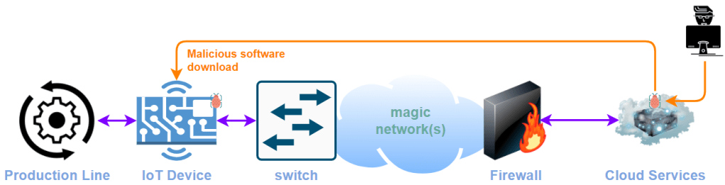 Lo scenario è oggi un grande classico ma solo un paio di anni fa, quando ne parlavo con i diretti interessati, sembrava fantascienza: un dispositivo IoT interconnesso alla rete dell’azienda con esigenza di accesso alla rete internet per conversare, anche solo dall’interno verso l’esterno, con i sistemi in cloud del fornitore e/o gestore del servizio. Nel corso dell’ultimo anno ho seguito diverse attività in ambito cyber sec. in contesti di “rete di fabbrica” ed ho avuto la fortuna di vedere in dettaglio alcune implementazioni. La banalizzo un po’ per rendere il concetto fruibile a più persone possibili, gli esperti mi perdoneranno ed eventualmente integreranno con la loro saggezza (sempre apprezzata).