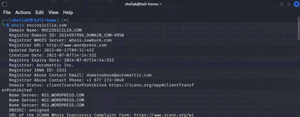 Non è raro trovare i primi due dati non disponibili per un tema di privacy, in passato era fin troppo semplice accedere ai riferimenti delle persone fisiche che gestivano i nomi dominio. Si possono comunque raccogliere dati interessanti in relazione al provider scelto dal target per la gestione dei DNS, nel mio caso NS[1-2-3].WORDPRESS.COM avendo un dominio registrato con il servizio wordpress.com.