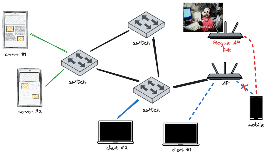 In entrambi i casi implementeremo un access point “non legittimo” che dovra’ apparire come uno degli access point del target per portare l’utente vittima ad utilizzare la nostra rete, l’effetto sull’utente sara’ pero’ diverso nei due casi.