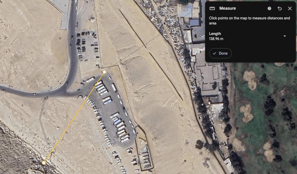 Supponendo di posizionarci nel punto più distante dalla struttura all’interno dell’area di sosta nord ci troveremmo a circa 140m di distanza in linea d’aria d’ingresso della struttura, senza ostacoli nel mezzo.